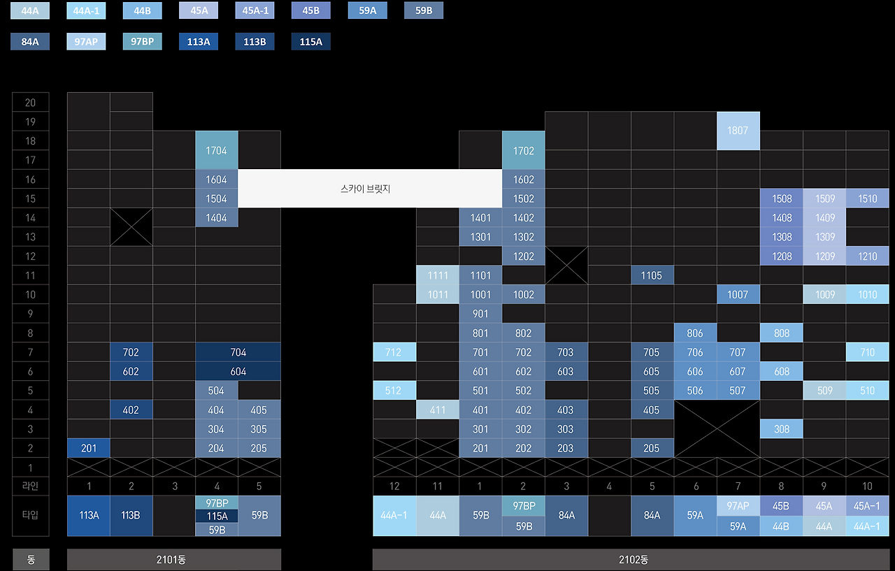 ✔ 44㎡ ~ 115㎡ 다양한 구성