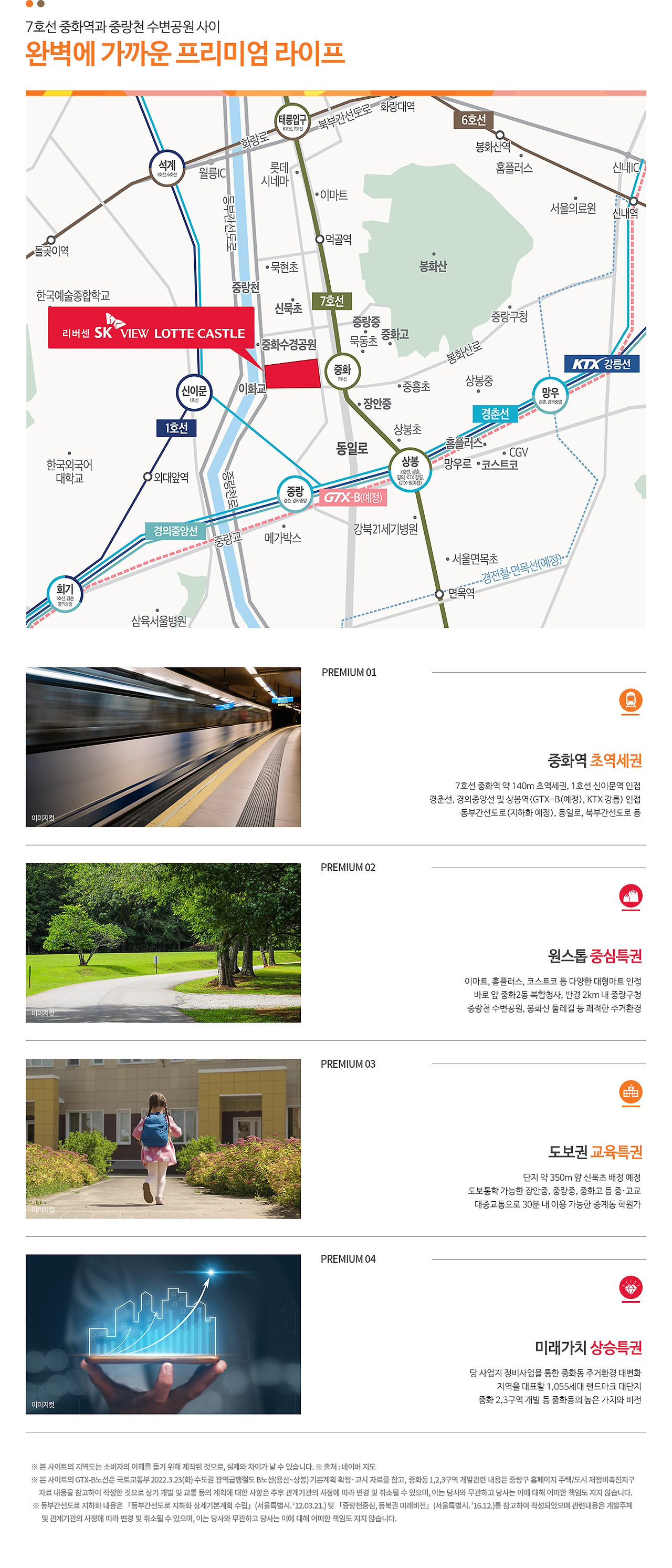 - 트리플 초역세권 입지: 1호선·경의중앙선 중랑역, 7호선 상봉역, GTX-B 예정 노선 접근성
