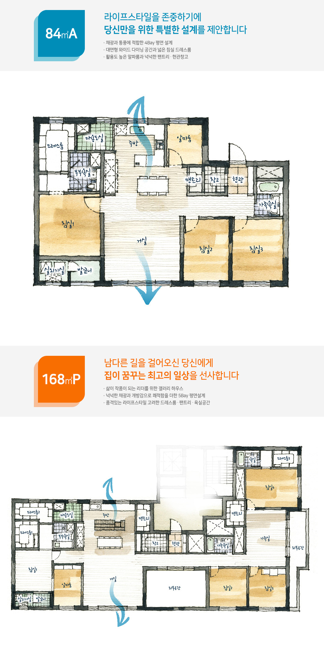 | 전용면적 | 84㎡A/B/C, 120㎡, 168㎡P |