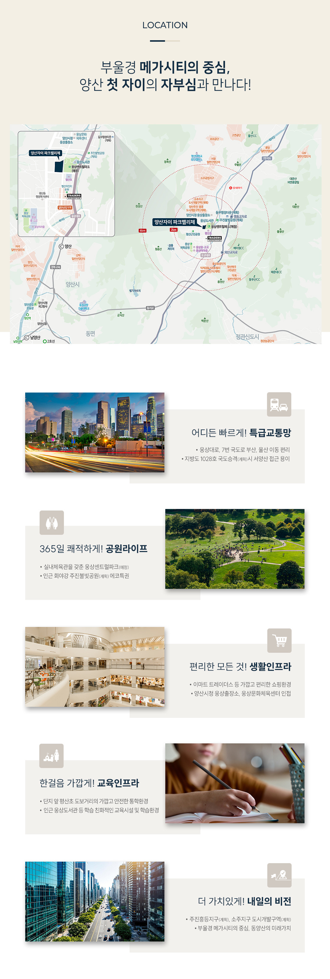| 생활 | 이마트 양산점, 하나로마트, CGV, 양산중앙병원 등 도보 및 차량 5분권 |