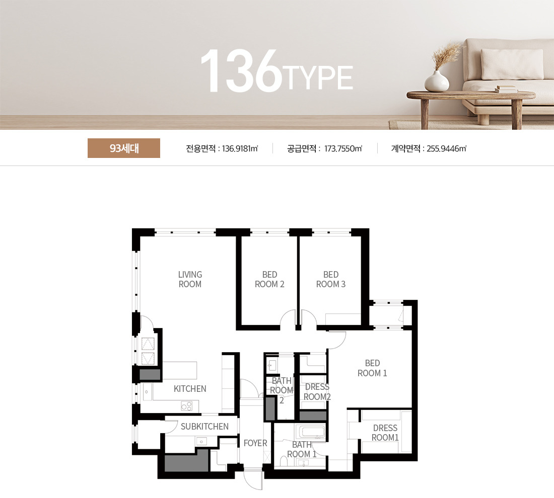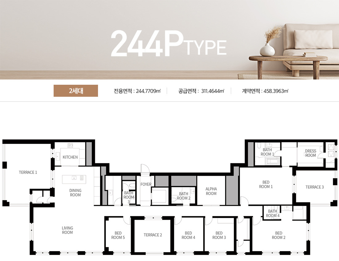| 전용면적 | 136㎡ ~ 244㎡ (총 13개 타입) |
