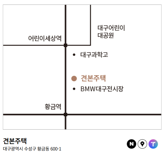 | 교통 | 도시철도 3호선 황금역 도보 5분 이내 수성IC·범어역·동대구역 접근 용이 |