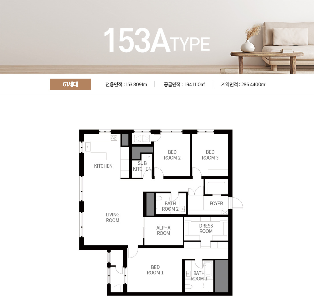 | 153㎡A | 61 | 약 19.6억 ~ 23.4억 원 |