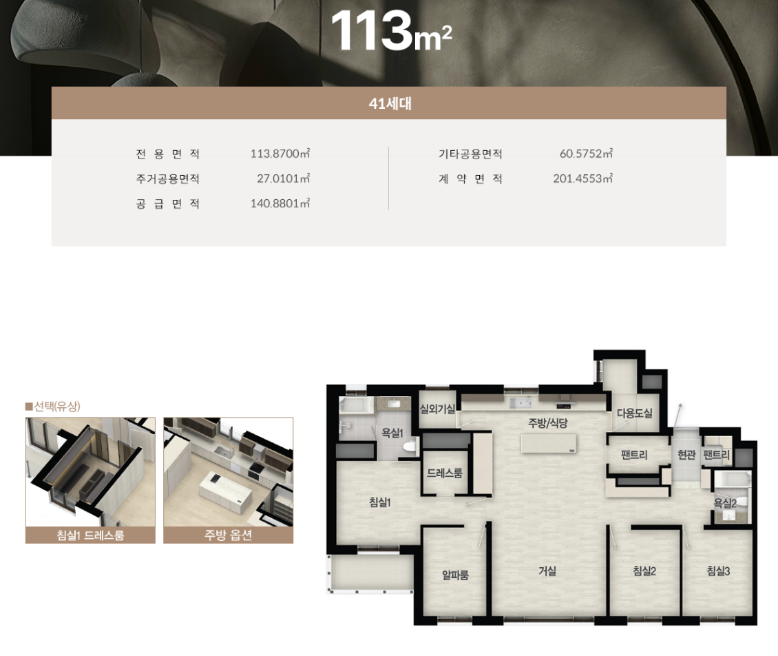 | 전용면적 | 84㎡A·B·C, 113㎡, 120㎡, P160㎡ |