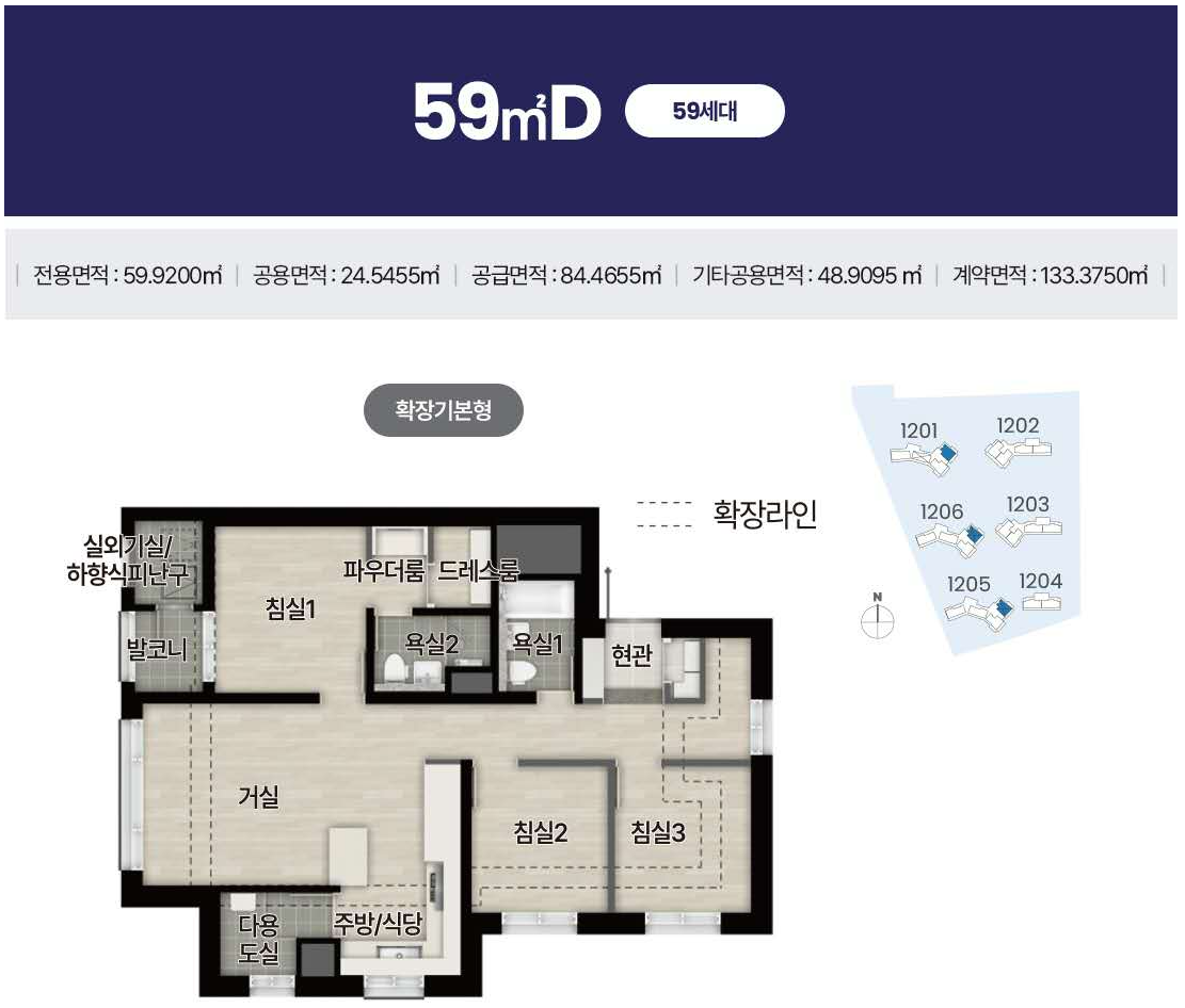 | 59D | 59세대 | 3.21억 ~ 3.42억 원 |