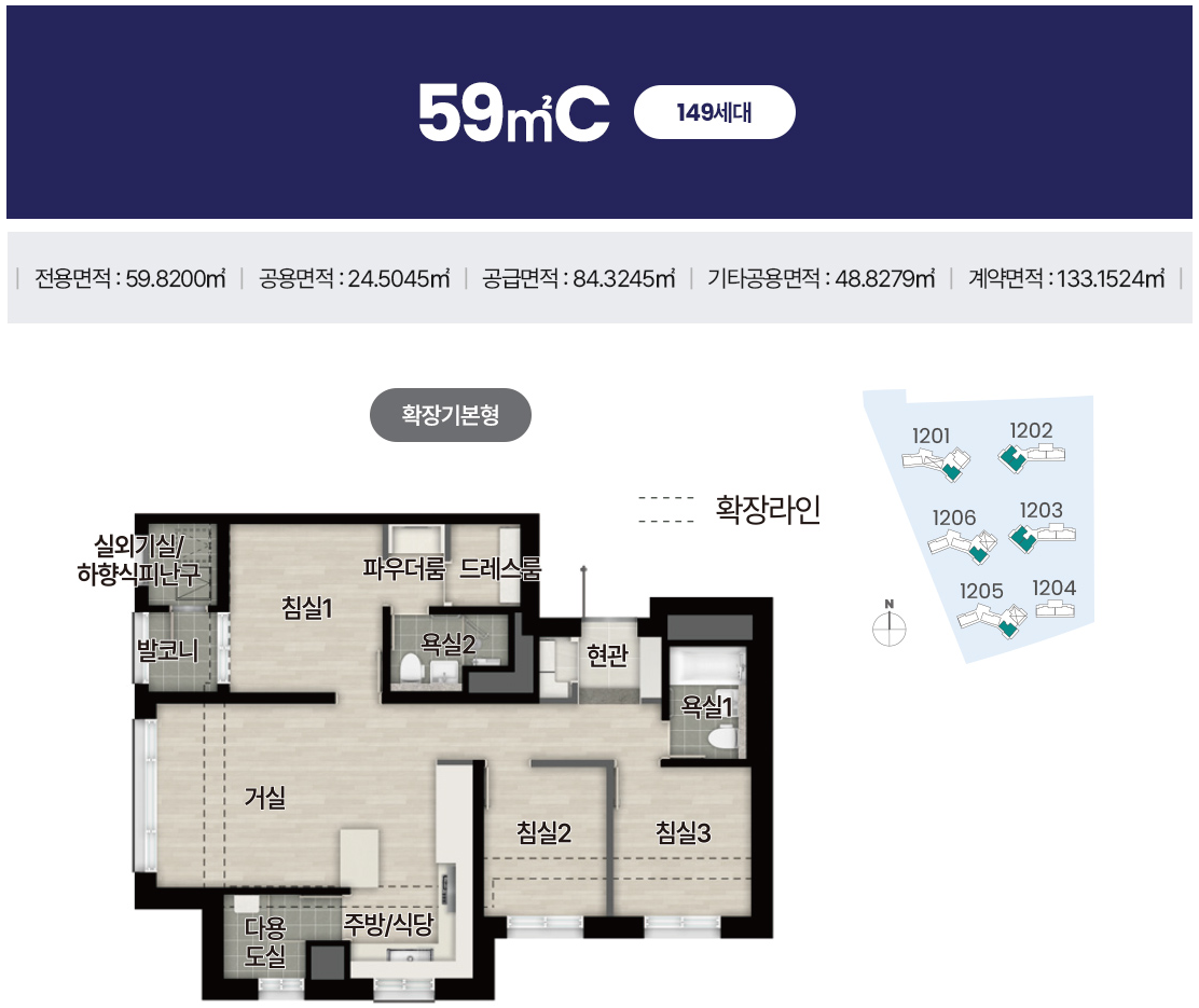 | 59C | 149세대 | 3.21억 ~ 3.42억 원 |