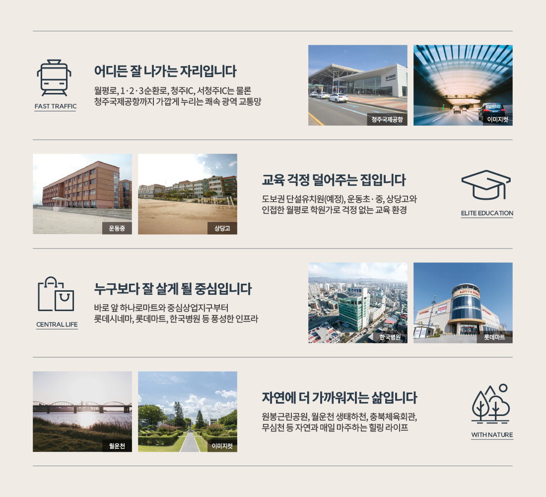 | 생활 | 홈플러스, 하나로마트, 상당구청, 용암시장 등 생활 인프라 밀집 |