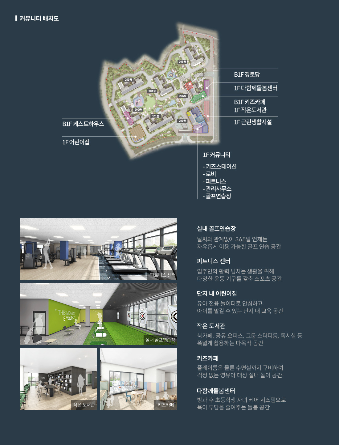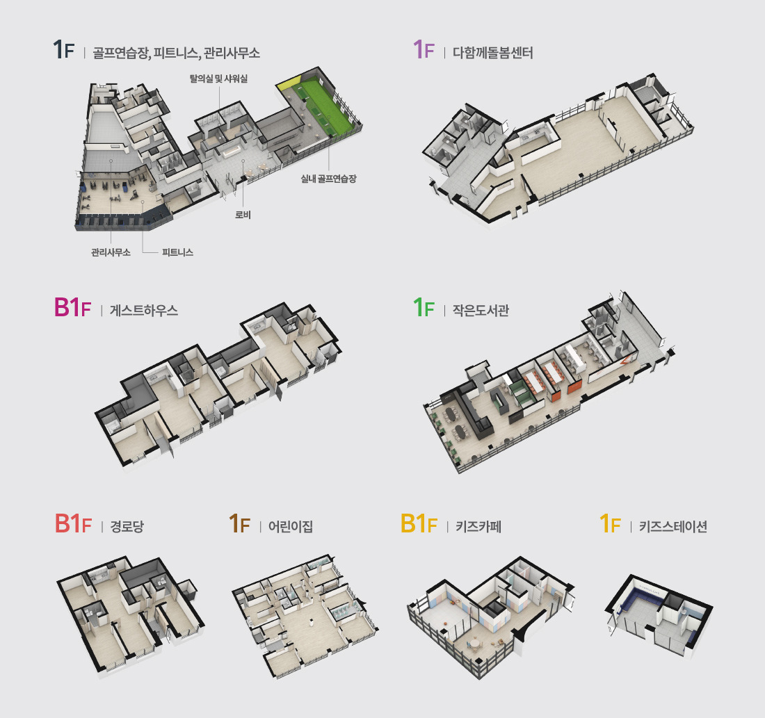 - 작은도서관, 피트니스센터, GX룸, 실내골프연습장